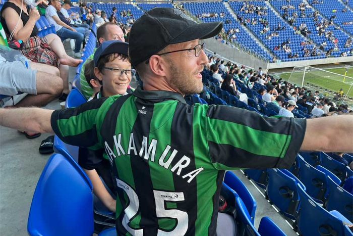 【写真】中村俊輔のユニフォームを着用するユアン・マクドゥーガルさん