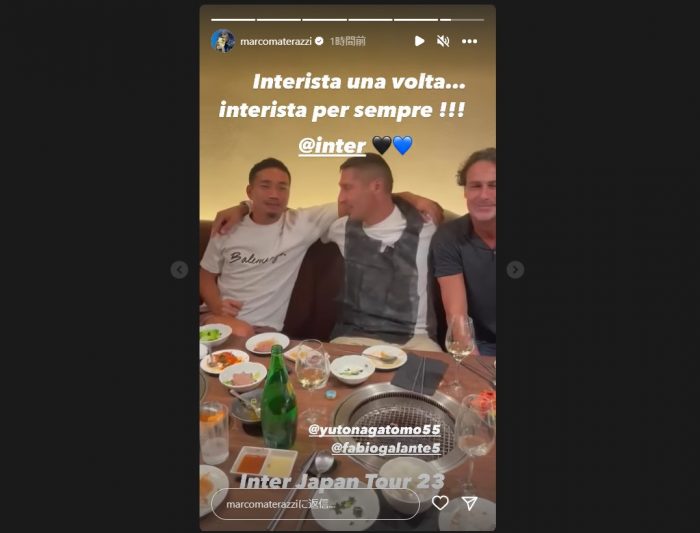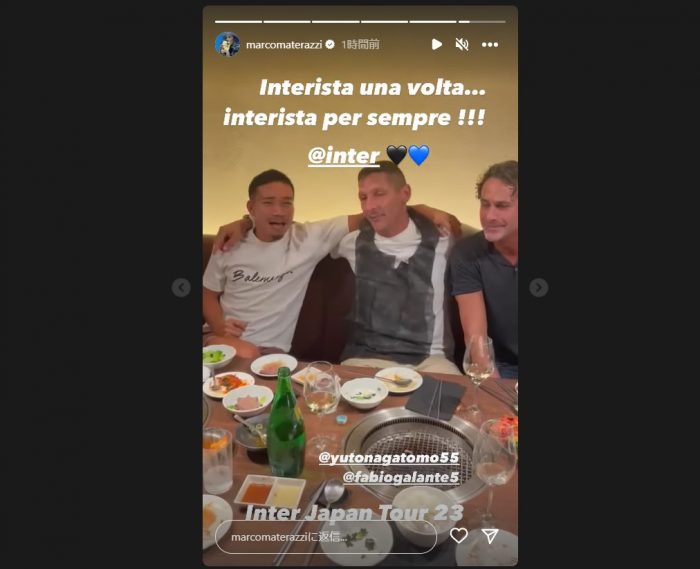 【画像】マルコ・マテラッツィ氏が公式インスタグラムで公開、長友佑都と日本で再会した実際の姿