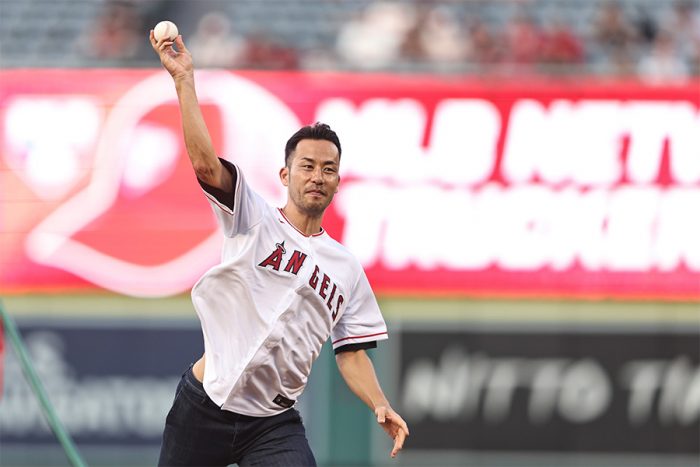 【写真】アメリカ移籍の吉田麻也、エンゼル・スタジアムで行われた始球式でボールを投げた姿