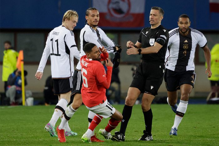 【写真】ドイツ代表FWレロイ・サネ、相手のファールに怒り→押し倒しでレッドカードの瞬間