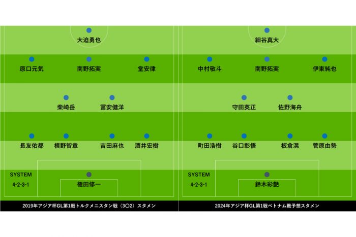 【布陣図】2019年トルクメニスタン戦の先発と2024年ベトナム戦の予想メンバー