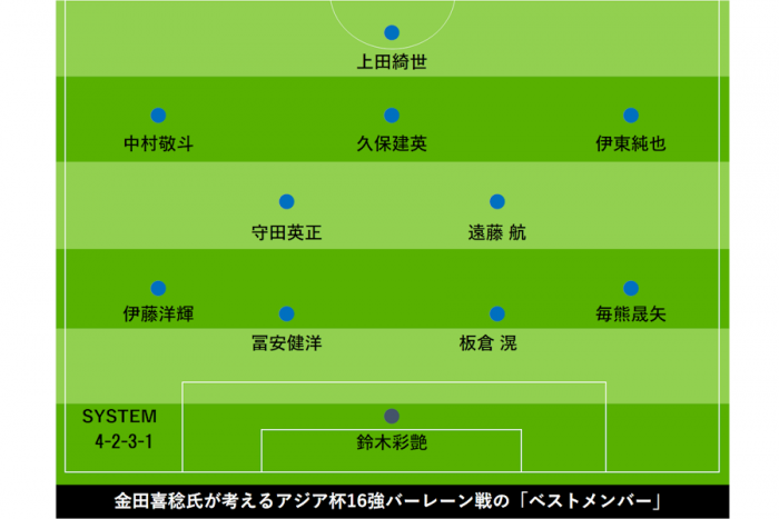 【布陣図】運命の16強バーレーン戦…金田喜稔氏が考える日本代表の「ベスト布陣」