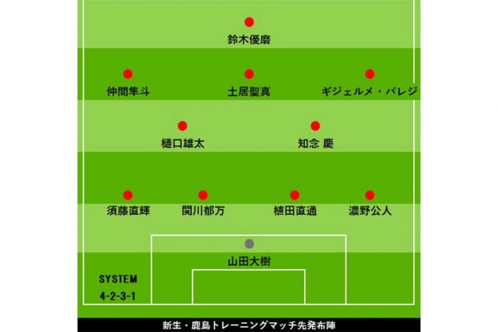 【布陣図】新生・鹿島、トレーニングマッチの先発メンバー&布陣