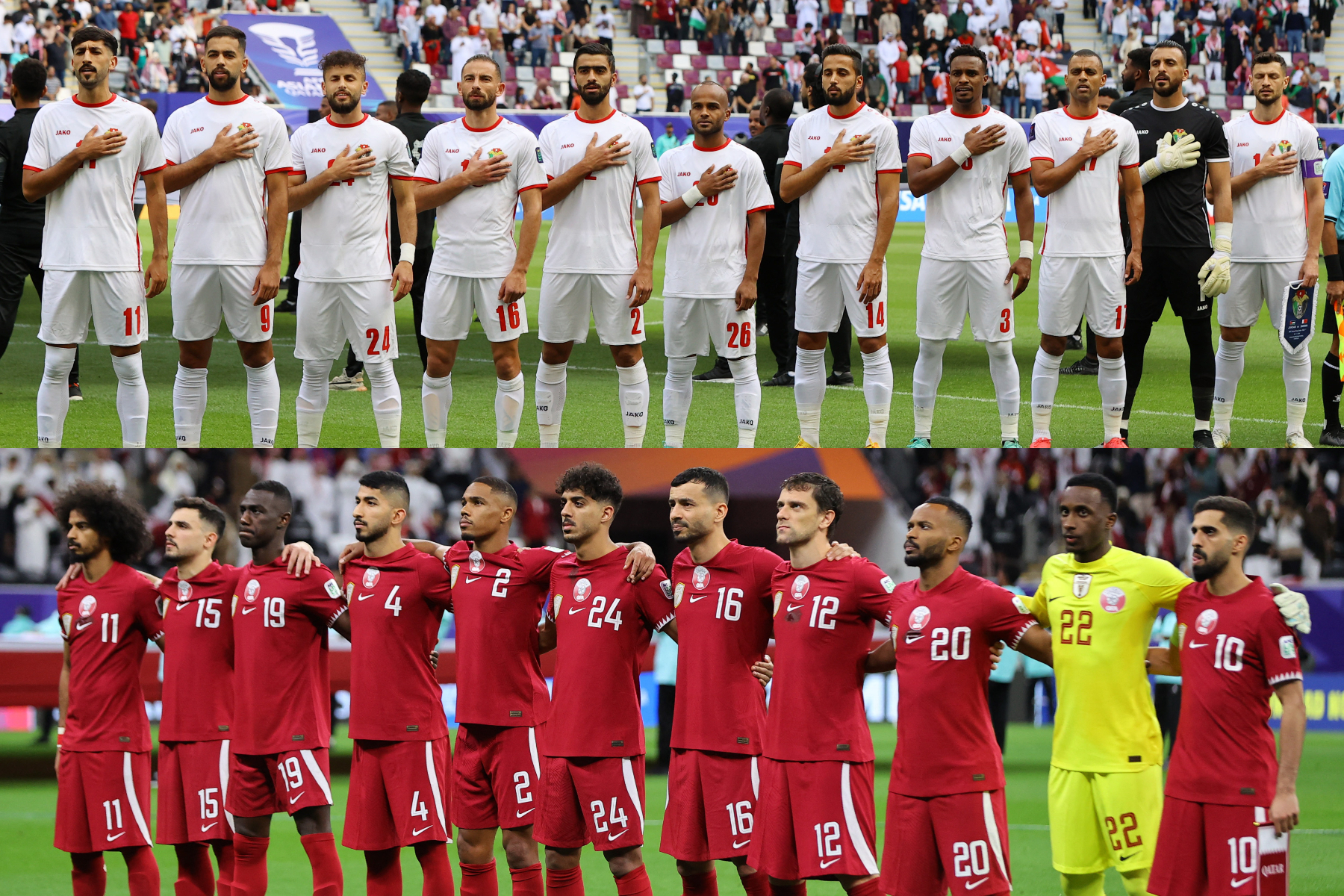 2019年大会の優勝国であるカタールは、今大会も決勝へ。韓国(1956、60年)、イラン(1968、72、76年)、サウジアラビア(1984、88年)、日本(2000、04年)に続き、大会2連覇を目指す。