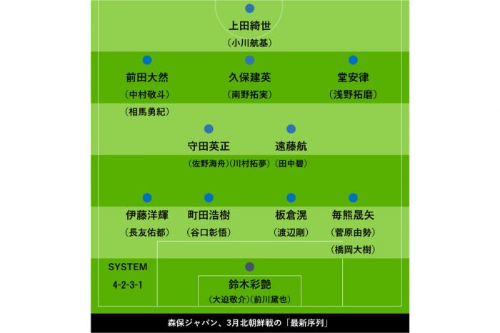 【布陣図】森保ジャパン、3月北朝鮮戦メンバー26人の「最新序列」