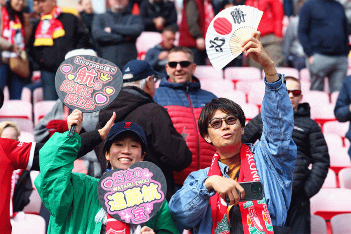 「Liverpoolまで応援に来たよ」 遠藤航、本拠地応援の日本人ファンの“推しメン団扇”に脚光