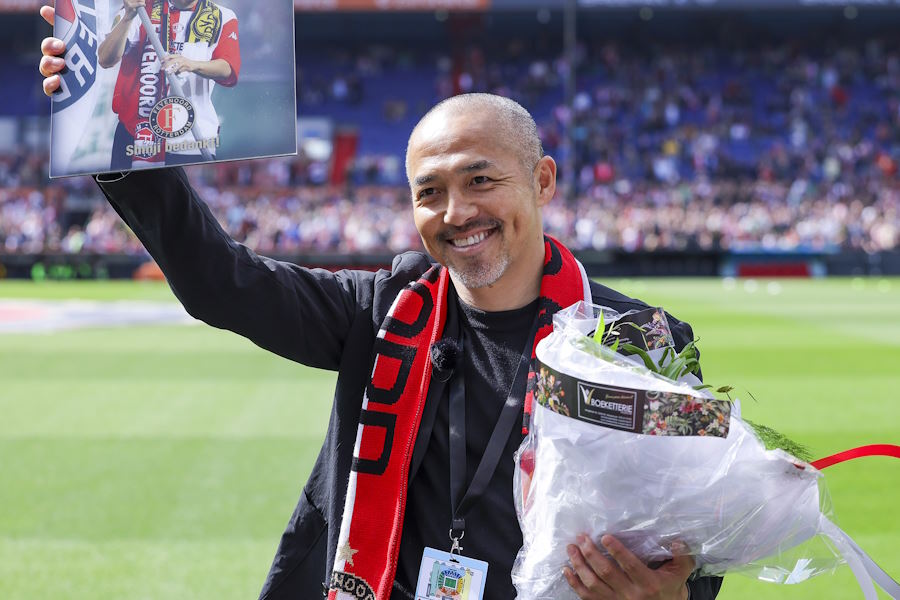 オランダ1部フェイエノールトは4月7日、エールディビジ第29節でアヤックスとの一戦を迎えた。かつて同クラブに所属した元日本代表MF小野伸二氏が本拠地に凱旋。キックオフ前に古巣サポーターの前に登場すると、現地のファンからビッグ3Dコレオや盛大なチャントで迎えられた。