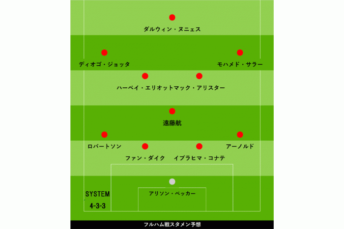 英メディアが予想したリバプールのフルハム戦スタメン11人&予想布陣【画像:FOOTBALL ZONE編集部】