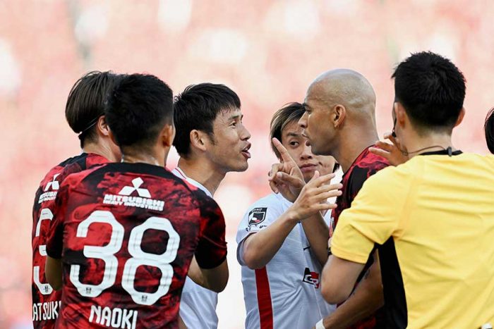 【写真】スローインの判定を巡り浦和FWチアゴ・サンタナが激高する実際のシーン
