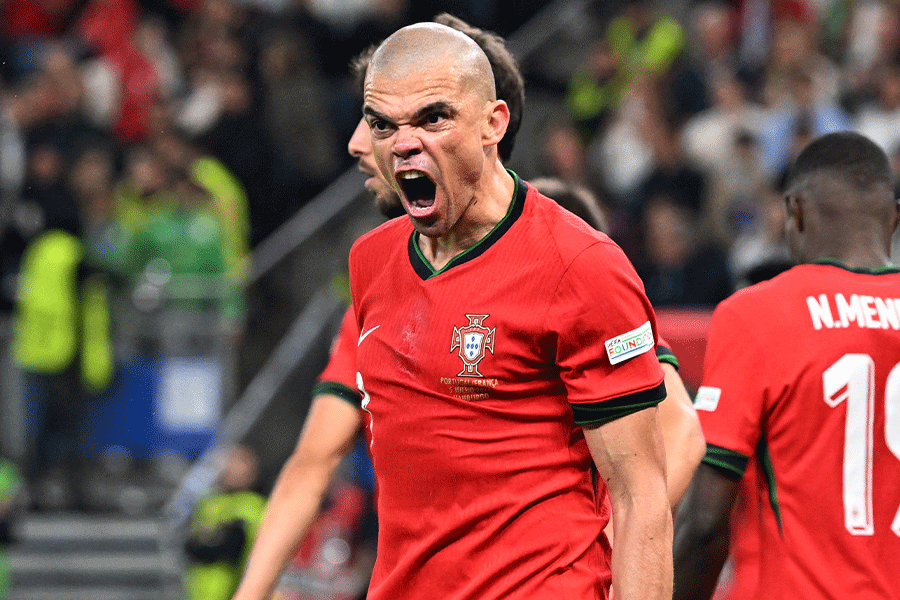 ポルトガル代表は現地時間7月5日、欧州選手権(EURO)準々決勝でフランス代表にPK戦の末に敗れた。ベスト8で大会を去り、41歳DFペペは試合後に涙し、FWクリスティアーノ・ロナウドとの抱擁は反響を呼んだ。そのなかで、試合中に見せたフランス代表FWとのマッチアップが大きな注目を集めている。