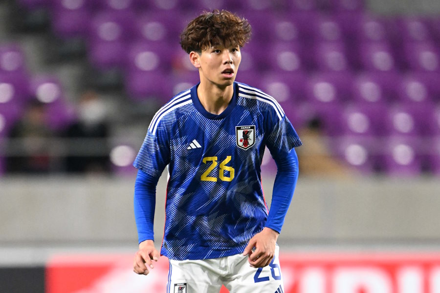 192センチ90キロ。高さと速さを兼ね備えた大型ディフェンダーながら、アカデミー時代から培ってきた足もとの技術があり、巧なビルドアップもこなす。まさに現代型センターバック(CB)と言える存在だ。サイズもさることながら、試合中に物怖じしないメンタルも魅力で、パリ五輪出場権のかかった U-23アジアカップでは、終始落ち着いたプレーぶりで最終ラインに君臨し続けた。チーム最年少の19歳ながら、本大会でも守備の要を担う仕事が予想されている。