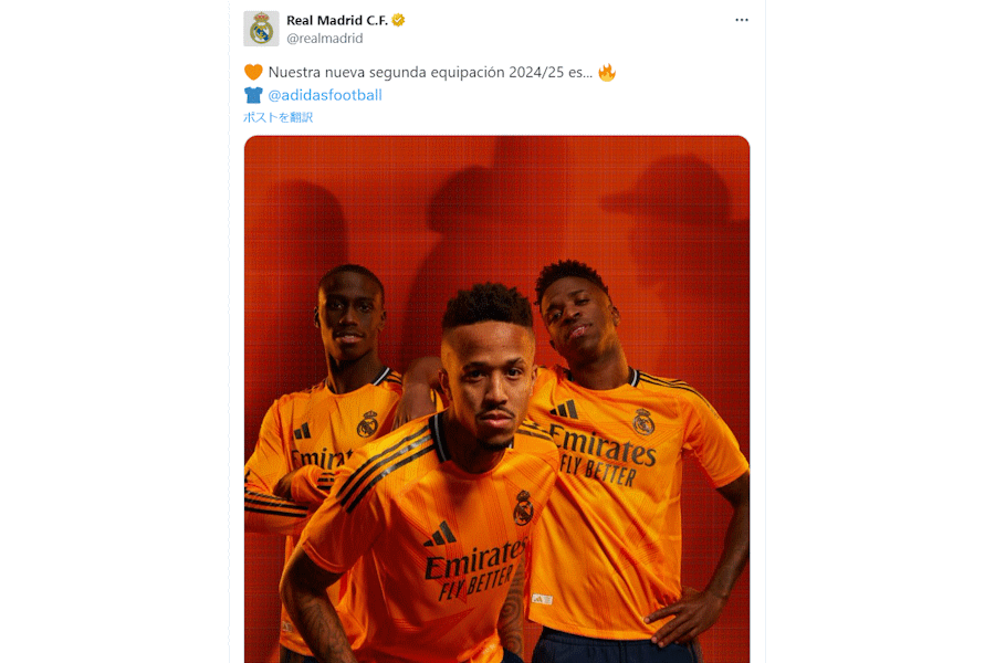 スペイン1部レアル・マドリードは7月22日、2024-25シーズンのアウェーユニフォームを発表した。オレンジ色が特徴の一枚に、さまざま反応が寄せられている。
