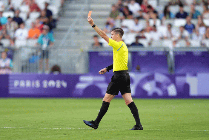 【実際の写真】主審がパラグアイ10番に向かってレッドカードを提示した瞬間
