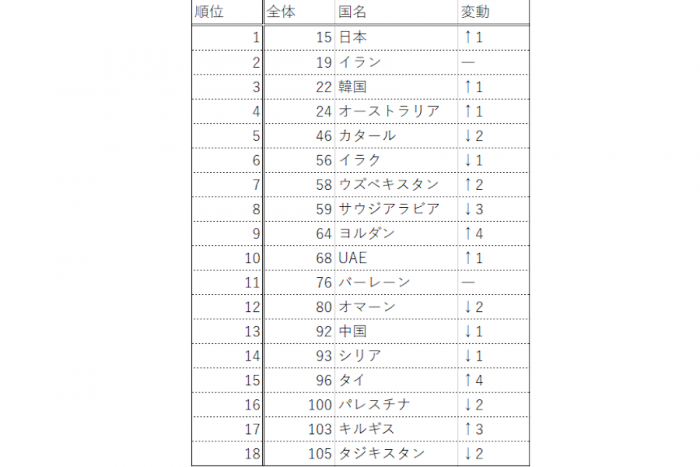 【実際のランキング表】日本が森保ジャパン発足後“最高ランク”を更新 最新FIFAランキング「世界トップ30&アジアトップ20」