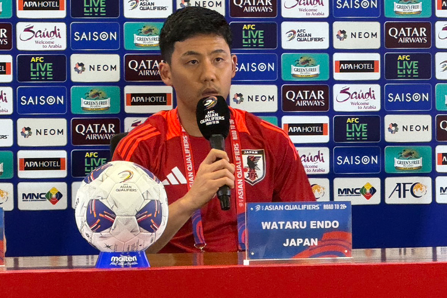 日本代表は現地時間11月14日、翌日に控えた2026年北中米ワールドカップ(W杯)アジア予選のインドネシア戦(ジャカルタ)の前日会見を実施した。森保一監督とキャプテンの遠藤航(リバプール)が出席。会見後には遠藤を取り囲む対戦国メディアの異様な光景があった。