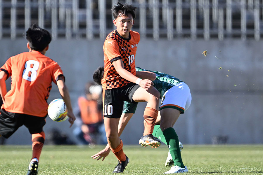 前回王者の青森山田とのゲームは、互いに大会初戦の硬さもありロングボールの応酬になった。その中で、高川学園は大森の存在が際立った。相手のセンターバックに後ろからマークを受けながらもボールを収めるプレーが入ることで、その周囲をFW田坂大知が細かく動く形も生きた。何より、その時間を作れたことで味方選手たちが息をつく時間も作れ、全体を押し上げることもできた。