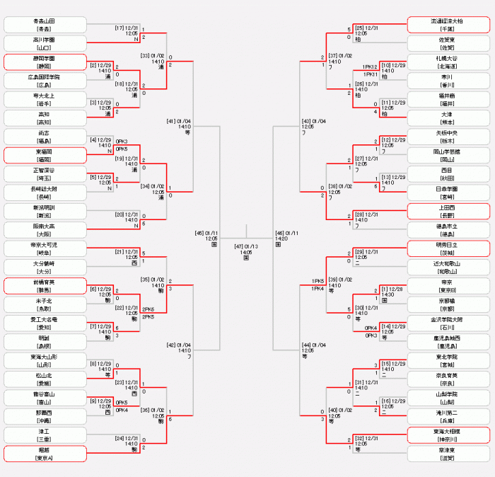 【画像】ベスト8が決定! 第103回高校サッカー選手権、トーナメント勝ち上がり一覧