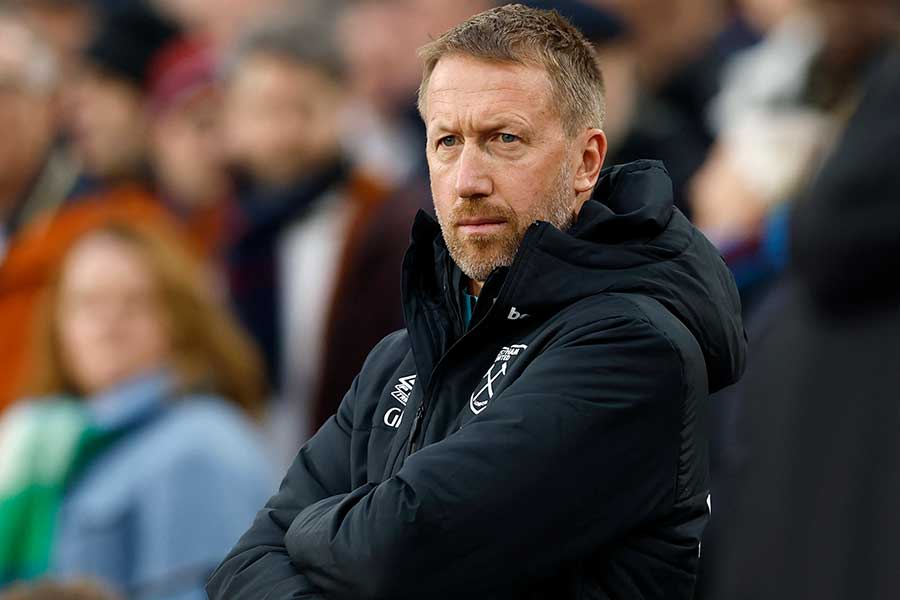 ウェストハムの新監督、グレアム・ポッターの使命とは? まずは、残留争いの泥沼を避けることだろう。前監督のフレン・ロペテギが解雇された1月8日、チームはプレミアリーグで2連敗中の14位となっていた。その翌日に就任が発表されたポッターの契約には、今季終了時点での解約を可能にする条項があるとされることからも、サバイバルが先決と思われる。無事にプレミアで続投となれば、残る2年間の契約期間で戦力の入れ替えとスタイルの変更を推し進めることなる。