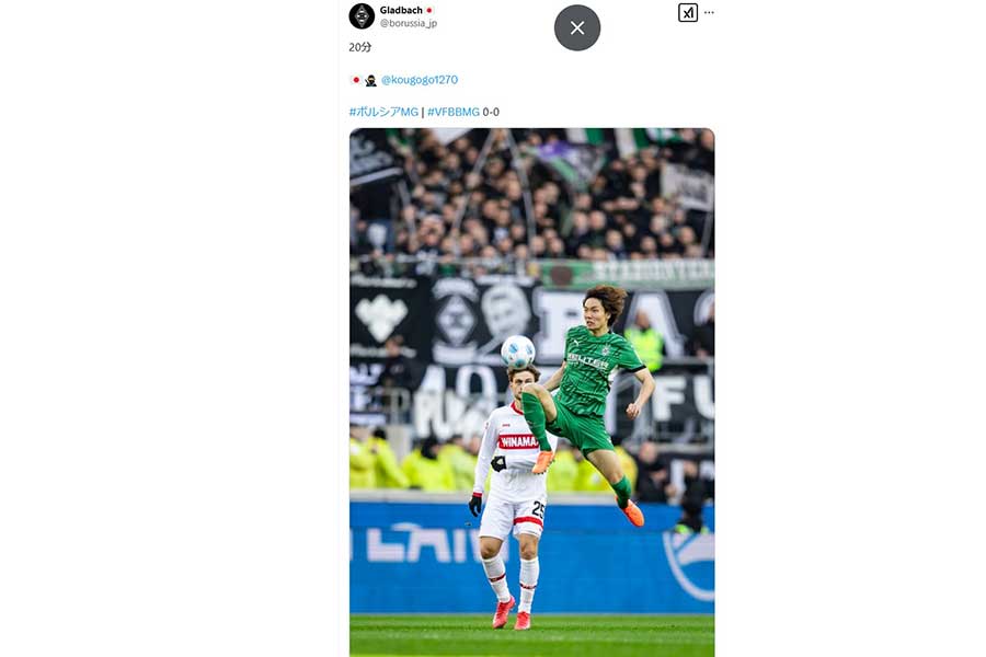 ドイツ1部ボルシアMGに所属する日本代表DF板倉滉は、ブンデスリーガ第19節ボーフム戦を除き公式戦フル出場を続けている。2月1日のシュトゥットガルト戦(2-1)でも勝利に貢献する活躍を披露しており、身体能力の高さを示すワンシーンも話題となっている。