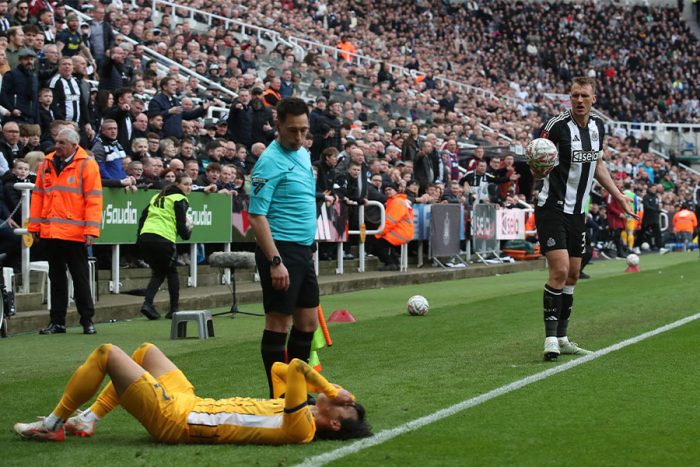 【実際の様子】ニューカッスル戦の後半ATに三笘薫がピッチに倒れ込んだ瞬間