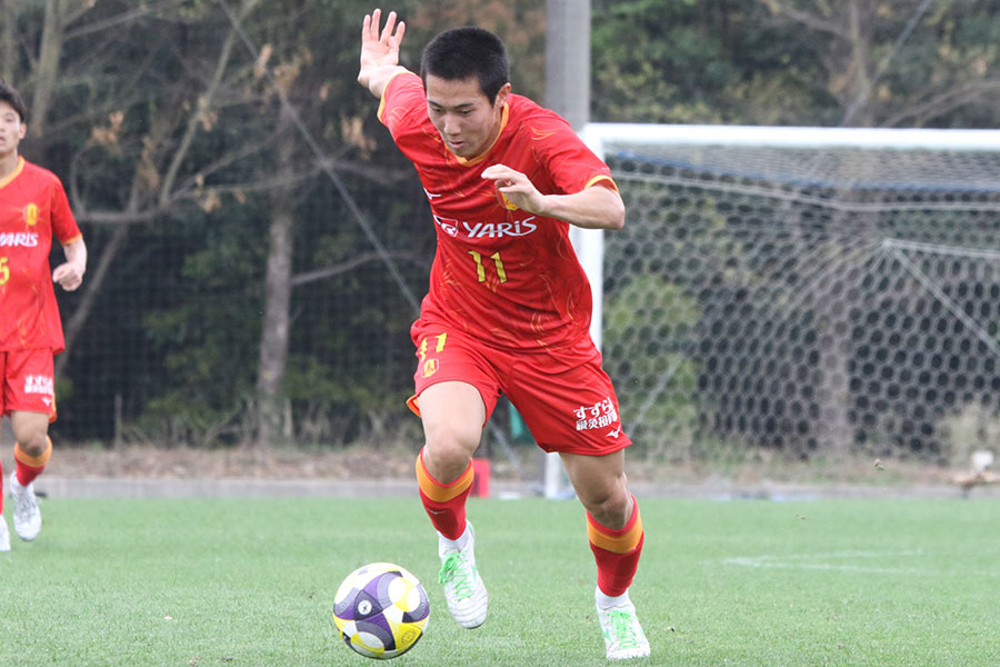 ゴールに向かっていく迫力、爆発的なスピードは見ている者たちを釘付けにする。名古屋グランパスU-18のエースストライカー・大西利都は、ゴール前に入るとずば抜けた集中力と高い身体能力とシュートセンスを駆使したフィニッシュワークで、矢のようなシュートをゴールに突き刺す。