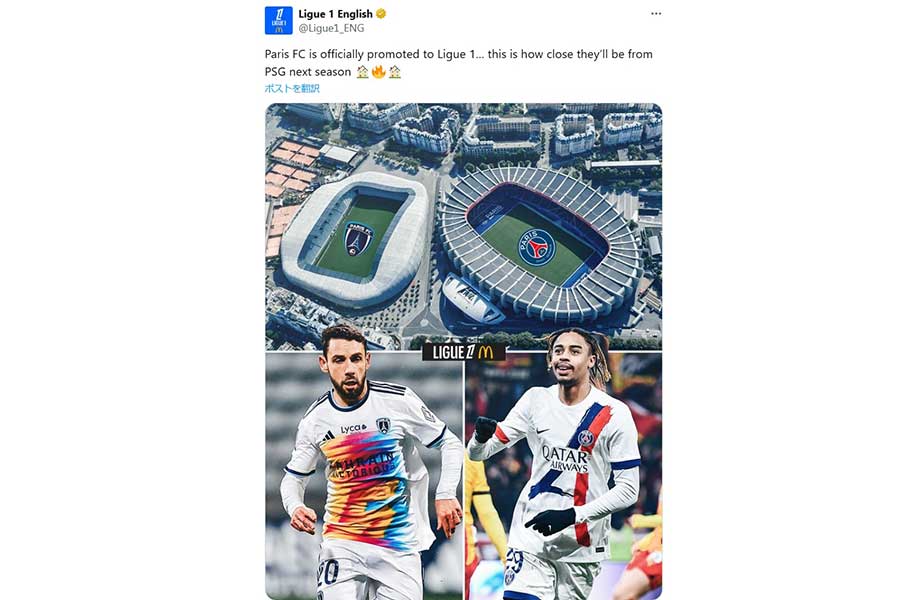 これにはSNSのファンも反応。「来季からパリダービー!距離近過ぎだろ」「この距離は信じられない」「徒歩数秒の距離」「パリダービー楽しみ」「流石に同時開催とかはないだろうけど、どういう運用になるのか気になる」と驚きのコメントが並んだ。