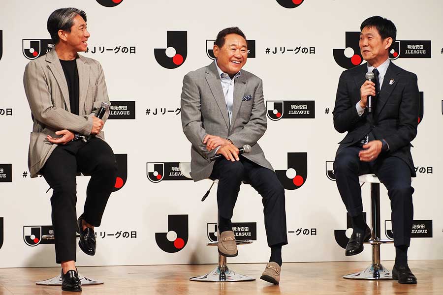 日本代表・森保一監督が5月14日、都内で行われた「2025 Jリーグの日特別企画発表会」にゲストとして出席した。松木安太郎氏、前園真聖氏とともにトークショーを行った。
