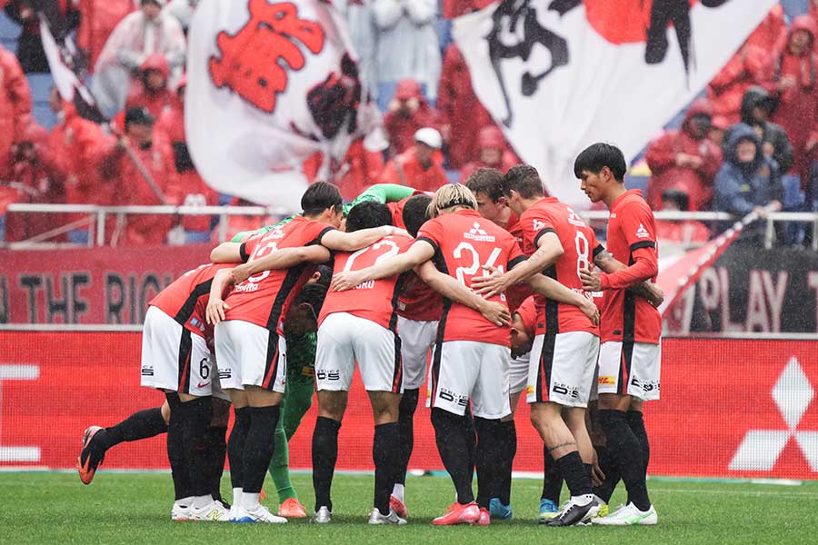 FC東京に1-2とリードを許していた浦和は、後半35分に右サイドから攻撃を仕掛ける。クロスに対してDFダニーロ・ホザがヘディングシュート。これがゴール前に流れて、最後はMF松本泰志がゴールに押し込んだ。