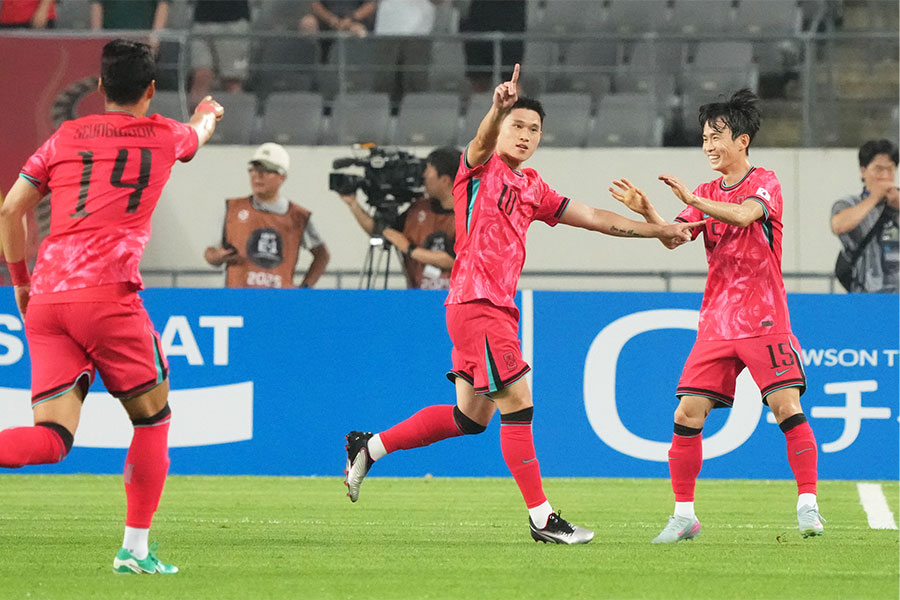 さらに同21分、DFイ・テソクが左サイドからクロスを上げると、ベテランFWチュ・ミンギュのヘディングで追加点。その後も試合をコントロールし続けた韓国は、後半12分に右CKから3点目を奪う。最後まで得点を許さず、3-0の白星スタートを切った。