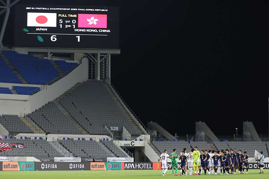 全チームが初戦を終えた今大会、日本戦は男女とも初戦のスタジアムで空席が圧倒的に目立つ結果になった。男子のホンコン・チャイナ戦は687人、女子のチャイニーズ・タイペイ戦は193人という衝撃の結果になった。女子に関しては水原ワールドカップスタジアムの収容人数は約4万3000人で、収容率に換算すると「0.45%」だった。