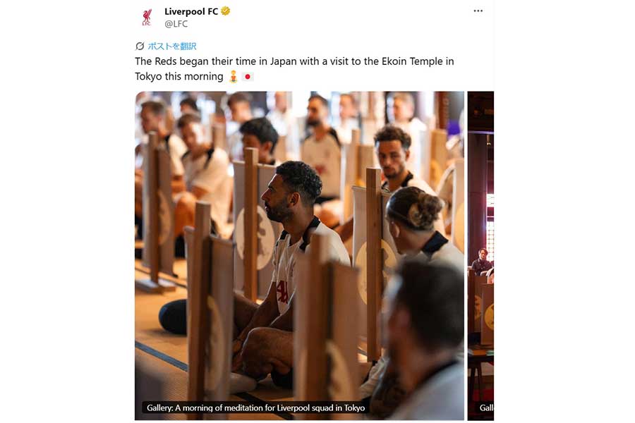 クラブの公式Xは、午前中に選手たちが日本の寺院を訪れた6枚の写真を公開。日本代表MF遠藤航をはじめ、エースFWモハメド・サラーらが座禅体験をする様子などが収められている。