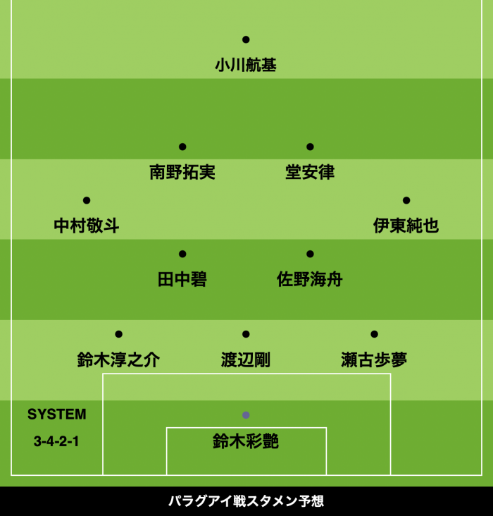 【布陣図】鈴木淳之介が抜擢…パラグアイ戦に臨むスタメン予想布陣図