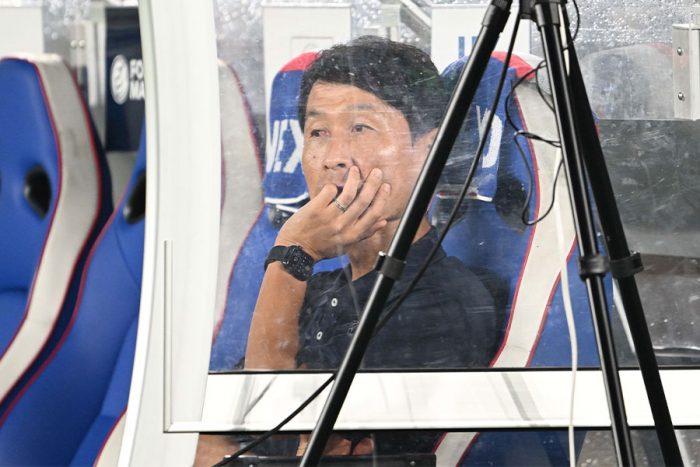 【写真】ベンチに座り不満げな表情を見せた金明輝監督
