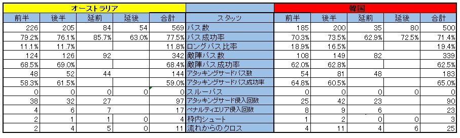 オーストラリアのクロスの数の減少と韓国のクロスの数の増加は前に述べた通り、1次リーグでの戦いを経たそれぞれの改善の結果だ。