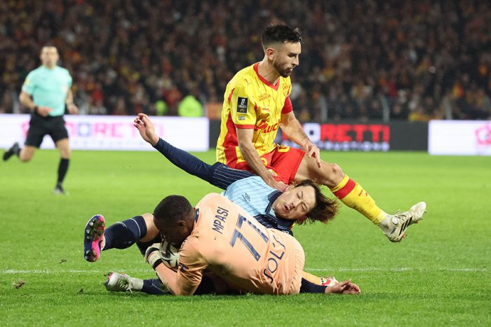瀬古歩夢が味方と衝突し負傷した決定的瞬間【写真:PsnewZ/アフロ】