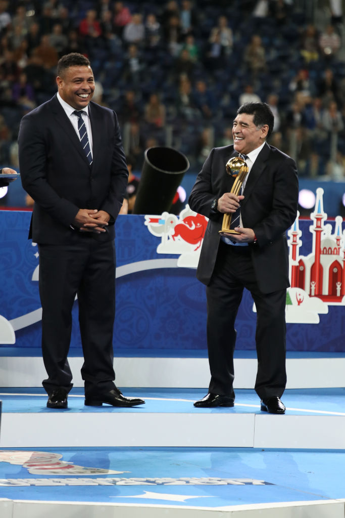 FIFAコンフェデレーションズカップ決勝が現地時間2日に行われ、ドイツ代表が1-0でチリ代表を下し、同大会初優勝を飾った。マラドーナ氏とロナウド氏は大会の表彰式に参加するため、現地に足を運んでいた。