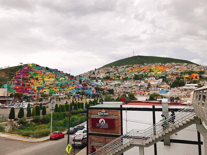丘の上から見えるパチューカの街並み。犯罪が多発したため、地元アーティストと協力して街全体をアートに変えた
