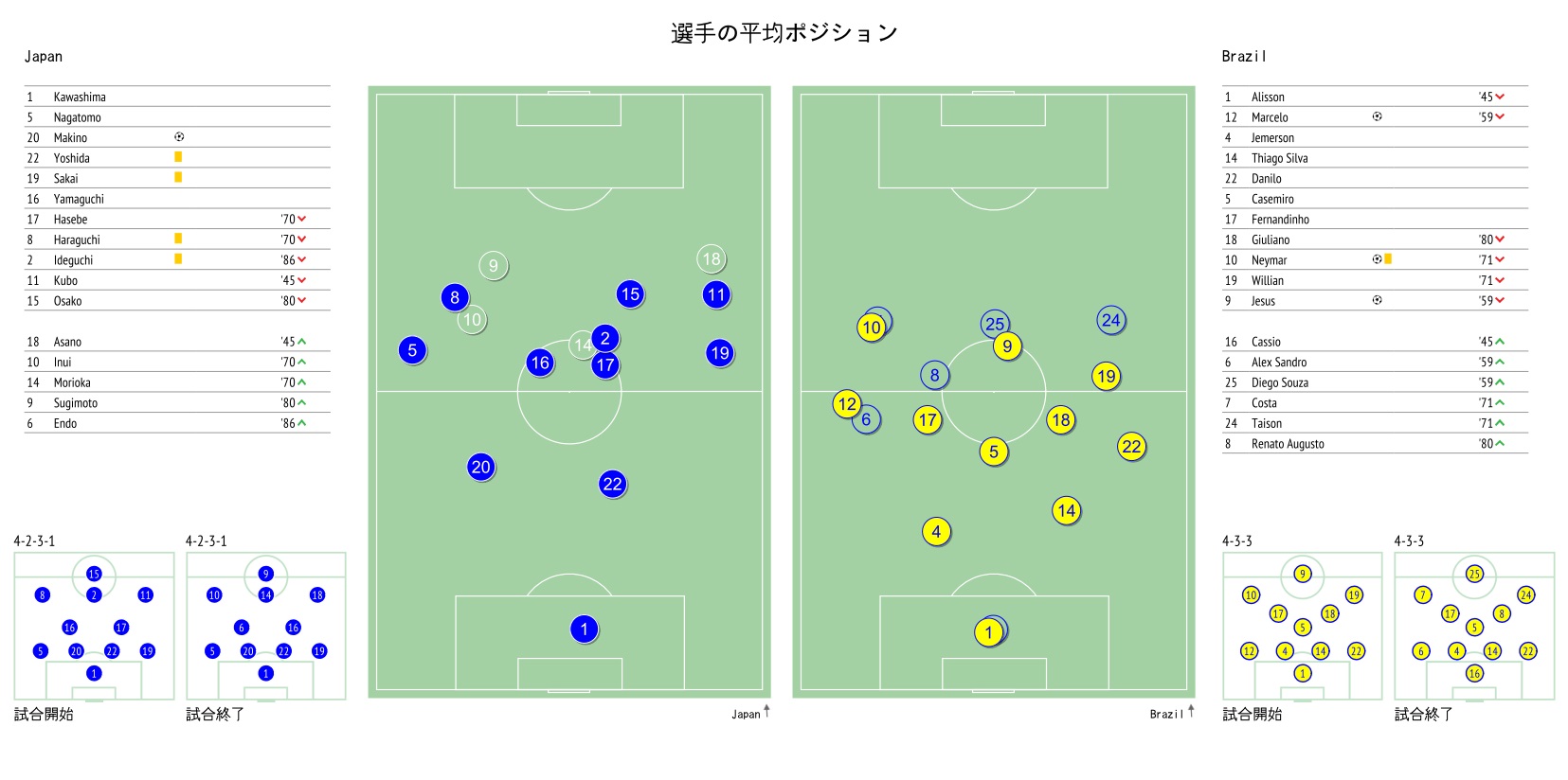 日本にとっては、指揮官が狙いとするサッカーを少なからず体現しようと努めていた。実際、日本がブラジルを上回った項目もあったものの、試合の流れに影響を及ぼす項目では総じて下回っており、負けるべくして負けたと言える。