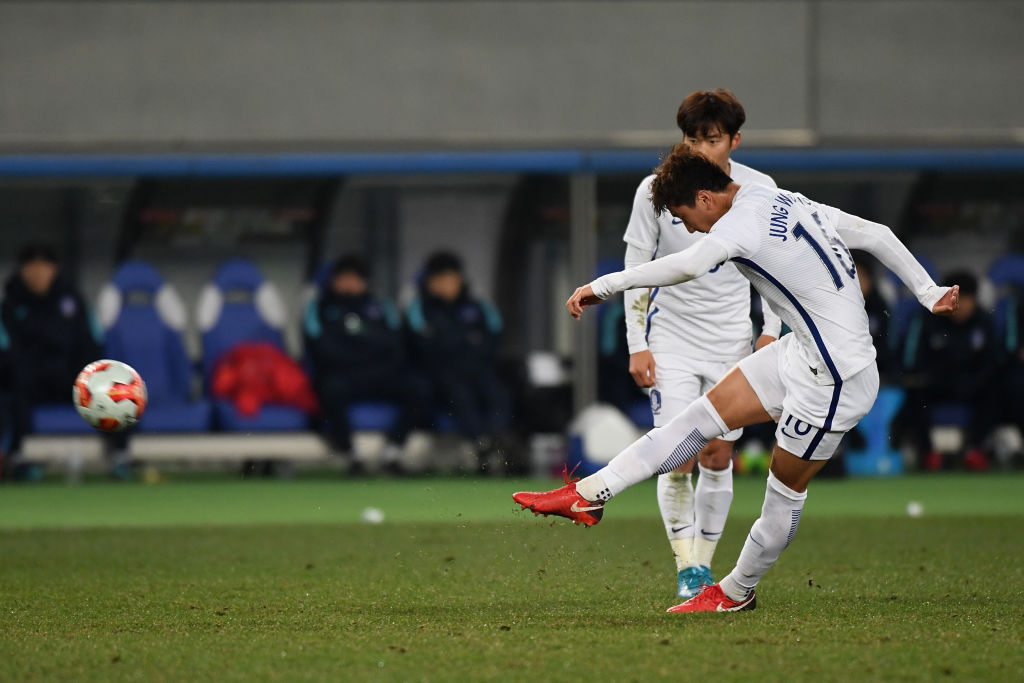 バヒド・ハリルホジッチ監督率いる日本代表は、16日のE-1選手権最終戦の韓国戦に臨み、1-1で迎えた同23分にJリーグでもプレー経験のある韓国代表MFチョン・ウヨンに鮮烈なFKを叩き込まれ、逆転を許した。圧巻のFKに現役Jリーガーも驚嘆の声を上げている。