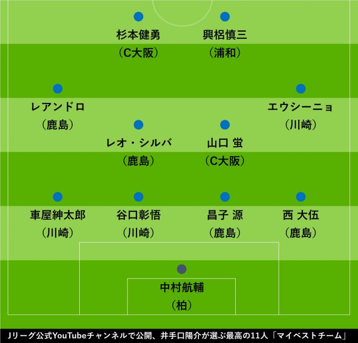 ロシア・ワールドカップ本大会が控える今年、海外でのプレーを選んだ井手口は12月のE-1選手権の日本代表にも名を連ねた選手たちを中心に、外国籍選手も3人を選出した。山口とレオ・シルバというボランチコンビを選出した辺りが、井手口らしい人選と言えるのかもしれない。