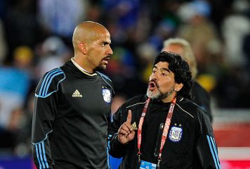 マラドーナがまたもお騒がせ! チャリティーマッチで“教え子”ベロンと小競り合い