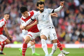 サラーの仕掛けを完璧ストップ アーセナル冨安、世界的FWからのボール奪取に反響「漫画の止め方」