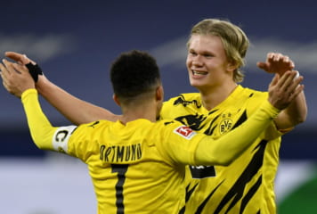 怪物ハーランドの“跳躍ボレー弾”に独騒然…ブンデス公式称賛「最優秀ゴール候補」