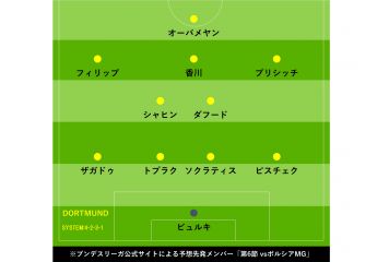 ドルトムント香川、トップ下でリーグ2戦連続先発予想 前節に続くゴールなるか
