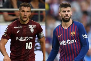 ポドルスキの“一発退場タックル”、三木谷会長がバルサDFピケに質問「レッドだと思う?」