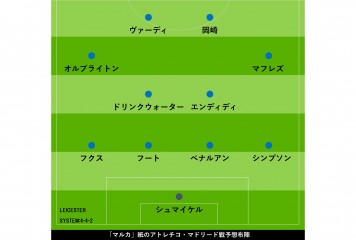 レスター岡崎、CLアトレチコ戦先発予想 ヴァーディとの“黄金コンビ”で逆転4強狙う