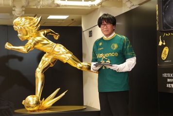 キャプテン翼「黄金像」お披露目 2800万円の純金…高橋陽一氏驚き「思ったよりも輝いている」
